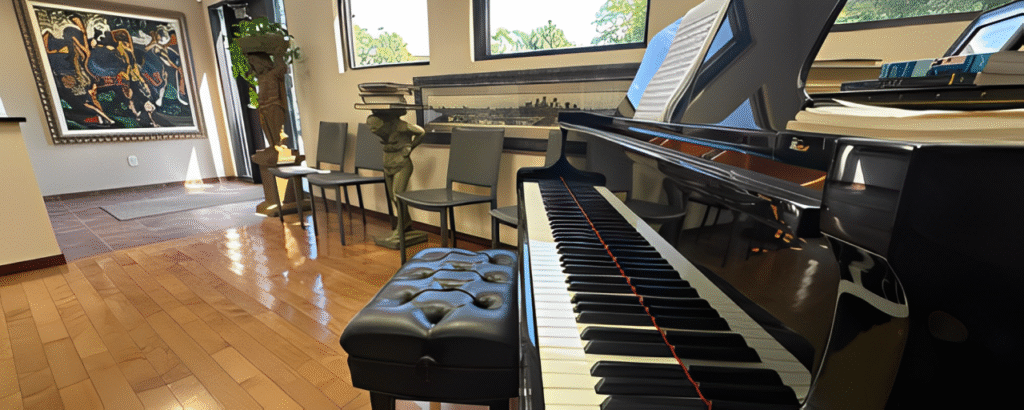 From the moment you walk through the doors, you’ll notice the difference. Original paintings by Dr. Boo herself line the walls, transforming treatment rooms and hallways into immersive galleries. A baby grand piano greets you in the reception area, setting a tone that is warm, creative, and inspiring.